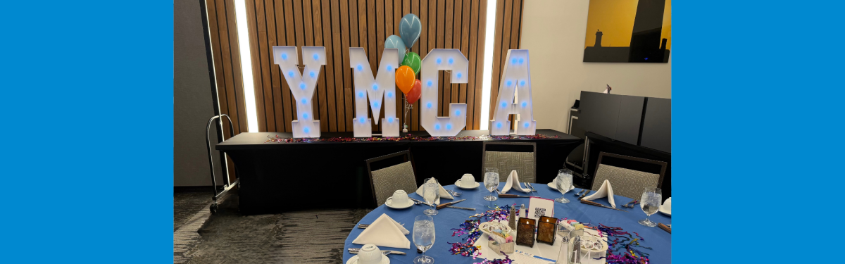 YMCA marquee letters at a dinner event